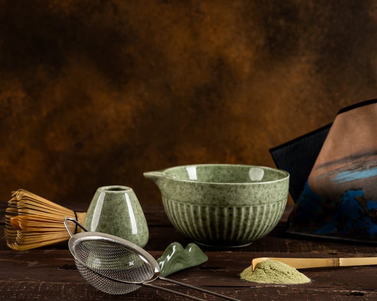 Experience the art of traditional Japanese tea with this complete Matcha Set. It includes a bamboo whisk (chasen) for perfectly frothy tea, a bamboo scoop (chashaku) for precise measurement, and a ceramic tea bowl (chawan) for easy mixing and drinking. Ideal for both beginners and tea enthusiasts, this set makes preparing authentic, smooth, and flavorful matcha simple and enjoyable at home.